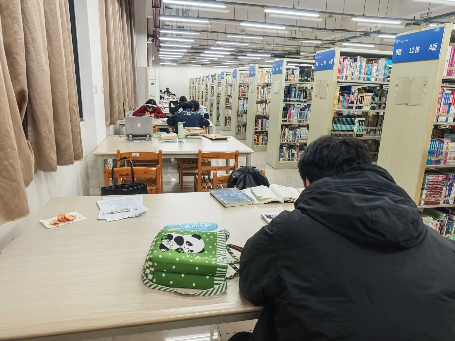 无论是阳光明媚的艳阳天还是小雨淅沥的阴雨天,图书馆总是一座难求。伏案的身影被灯光勾勒得格外认真,笔尖在纸上沙沙作响,电脑被不断敲击。专注的侧脸、密麻的批注、咖啡杯沿的雾气……每一帧动态皆诠释着“厚德笃学”的深意。这里没有喧嚣,唯有思想碰撞的炽热Live。